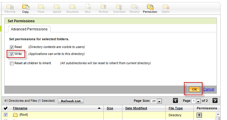 After that you will see a small panel open up. Select the Write checkbox and click OK.